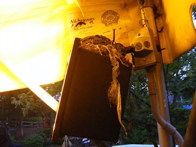 Вот так пристроилось их гнездо на фонаре. Если что - это не я косая, это фонарь закреплен под углом!