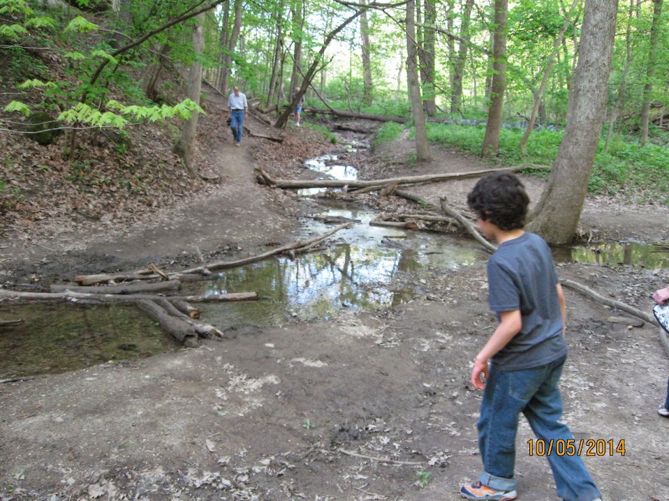 Ко второму каньону тропка вела совсем "естественная", т.е. местные рэнжеры её протоптали и смотрят, чтоб не завалило совсем, но особо не усердствуют с расчисткой.  Где-то по корням перебираешься, а где-то ручьи поразливались и залили, приходится через них скакать по набросаным брёвнам.  Вот так, примерно: